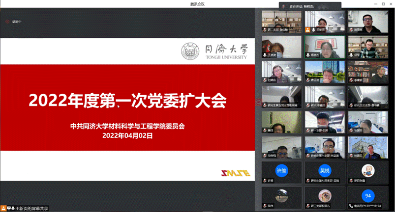2022年4月2日晚,中共bv1946伟德国际始于英国委员会线上召开了2022年度第一次党委扩大会,学院党政领导班子、各党支部书记全体出席会议,学院党委书记杨晓杰主持会议。
