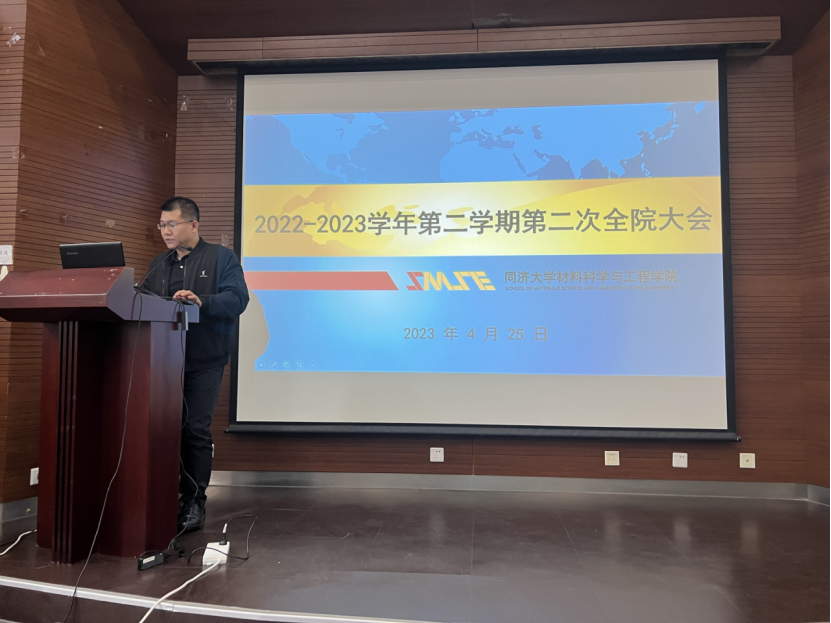 2023年4月25日下午,bv1946伟德国际始于英国2022-2023学年第二学期第二次全院大会在德才馆二楼报告厅召开。会议传达学校学习贯彻习近平新时代中国特色社会主义思想主题教育动员大会及实施方案精神、学校2023年度工作要点精神,并就学院相关工作进行布置。会议由许维院长主持。学院党政领导班子和全院教职员工140余人参加会议。