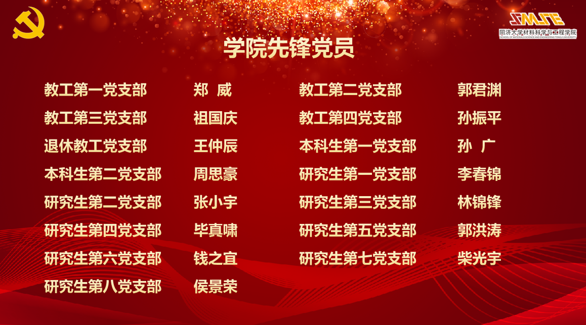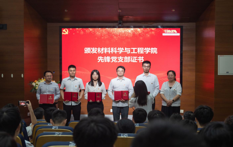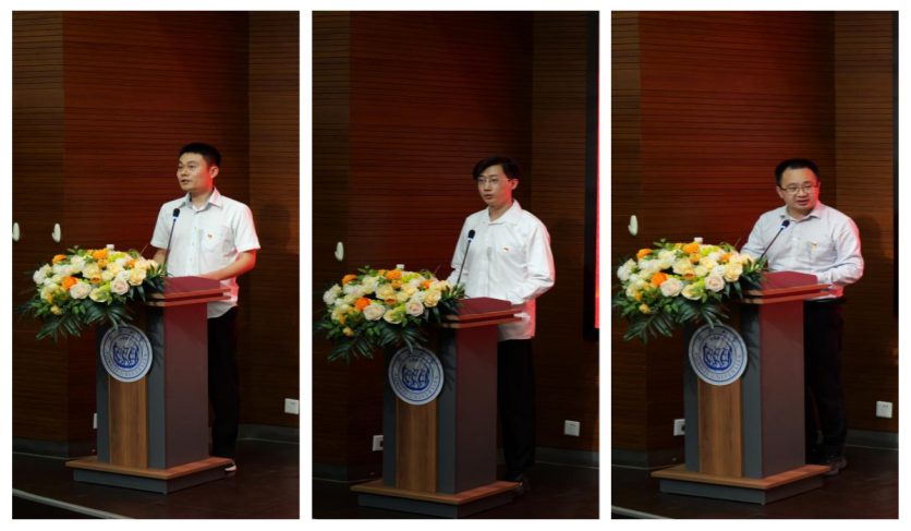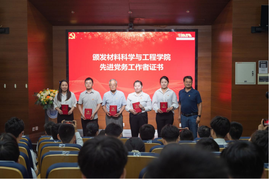 颁奖完毕后,教工第三党支部书记祖国庆、研究生第八党支部钟雪鹏、教工第四党支部陈庆,分别作为学院先锋党员、学校优秀共产党员、学院先锋党支部代表进行交流发言。代表们指出,要牢记党员初心,聚焦国家的发展战略大局,将党的建设工作融入到教育、科技、人才各项中心工作中,融入到材料强国的使命担当中。