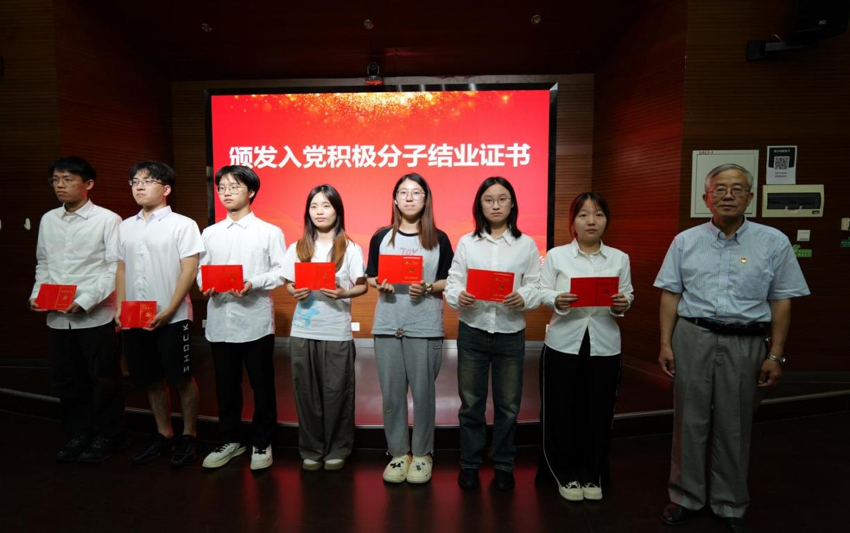 随后,大会举行2024春季分党校结业仪式。学院退休教工党支部先进党务工作者童寿兴同志和学院原副院长、学院退休教师党员王国建分别为2024年春季入党积极分子培训班和发展对象培训班学员颁发结业证书。