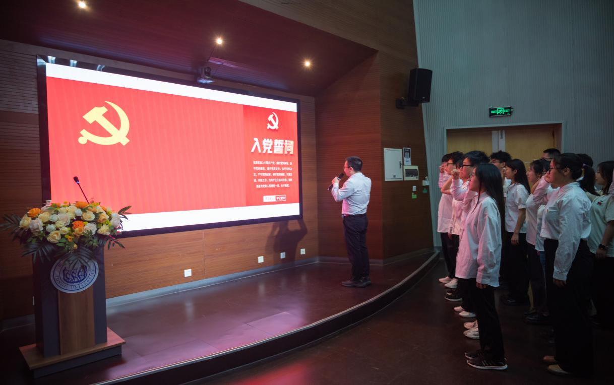 大会现场,学校优秀共产党员陈庆同志带领新接收的15位预备党员宣誓,老党员重温入党誓词,面向党旗,高举右拳,庄严宣誓,在铮铮誓言中重温入党初心,坚定理想信念,牢记职责使命,以更加奋发有为的精神状态和勇立潮头的实干担当,同心协力推进学院高质量发展新征程。
