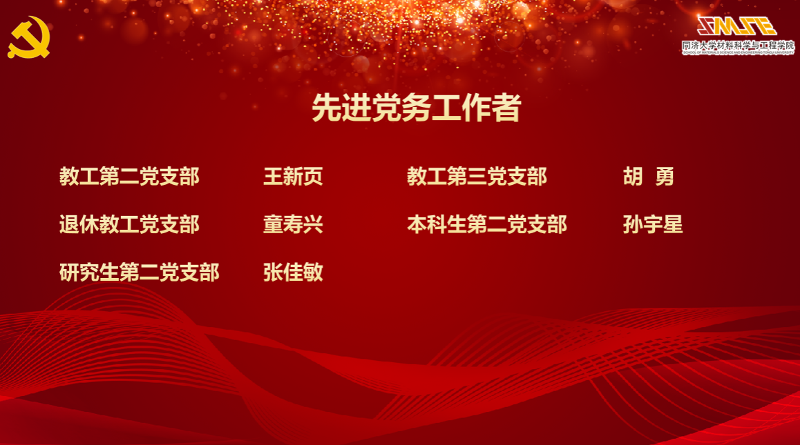 先进党务工作者、先锋党支部表彰名单