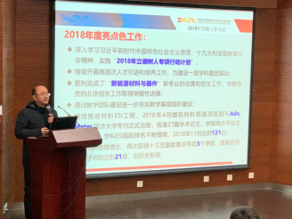 工会主席袁华作学院工会工作报告和学院工会财务情况报告。袁华回顾了2018年工会工作,总结了材料学院工会在围绕学院中心工作,服务发展大局,加强学院民主管理,保障教师权利和促进教师身心健康发面做出的积极有效的工作,最后明确指出了2019年工会工作的努力方向。袁华说,2019年,学院工会将进一步全面深化改革,秉承初心,砥砺前行,勤勤恳恳为大家服务。
