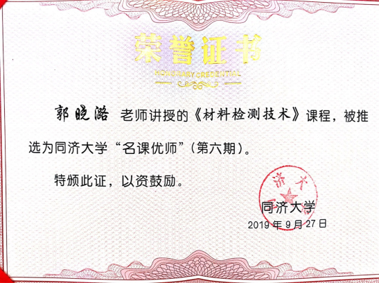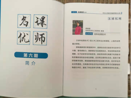 主讲人编撰的课程教材《建筑物无损检测技术》获评伟德国际优秀本科生教材二等奖;依托该课程获全国卓越联盟高校青年教师创新大赛三等奖,全国无机非金属材料教学大赛二等奖和三等奖;伟德国际名课优师、教学成果三等奖、育才奖、耀华教学奖、坤瑞泰隆新墙材教育奖、英才优青计划、英才骨干计划、三八红旗手、五四奖章提名奖等。