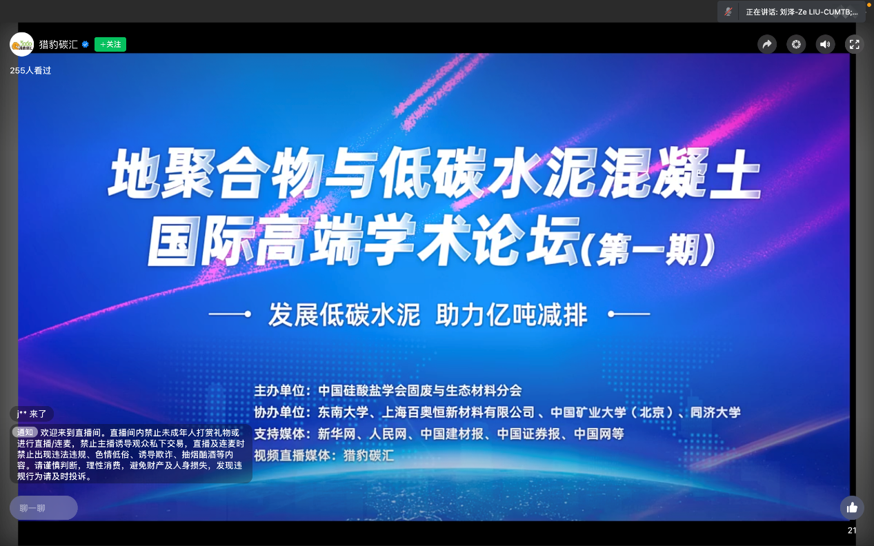 地聚合物与低碳水泥混凝土国际高端论坛 直播