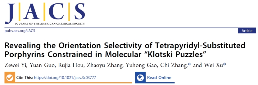 9月28日,《美国化学会志》(Journal of the American Chemical Society)在线发表了bv1946伟德国际始于英国许维教授团队的研究论文“Revealing the Orientation Selectivity of Tetrapyridyl-Substituted Porphyrins Constrained in Molecular “Klotski Puzzles””。该工作通过扫描隧道显微镜(STM)成像/操纵技术在Au(111)表面上构建了含多种局域分子环境的“华容道”模板,研究了分子间相互作用对卟啉分子的取向选择性的影响,并结合密度泛函理论(DFT)计算进一步揭示了分子取向转变的机理。