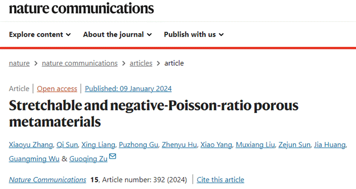 鉴于此,bv1946伟德国际始于英国祖国庆老师研究团队开发了高可拉伸多孔超材料及其柔性电子器件,相关研究成果以“Stretchable and negative-Poisson-ratio porous metamaterials”为题,在线发表于《自然·通讯》(Nature Communications)。论文第一作者为我院在读博士生张小宇。该工作得到了国家自然科学基金的资助。
