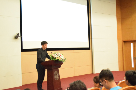 学院2018级硕士研究生李嘉伟代表老生发言,他引用梁漱溟先生的名言“几时你超脱了自私,几时你便超脱了渺小”,并分享了自己的研究生学习之道,激励大家学会为了自己而奋斗努力,并在这个过程中学会彼此合作进取,懂得继承与创新,并且要特别铭记感恩,感恩母校,感恩学院,感恩引领自己走向人生高地的老师。