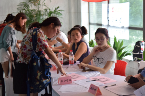 上午11点50分,现场迎来了第一批学院研究生新生,工作人员立即忙碌起来;12点整,迎新活动迎来一波小高潮,320旁排起了长队,从扫描身份证、查验应届生毕业证书与学位证书、收取户口迁移证、党组织关系介绍信、发放研究生证及校徽、解读培养计划、发放入学安排,再至各班班主任处报到、分发材料,最后领取院服等,整个流程有条不紊得进行,每一个环节均会有负责的老师陪同,每一个步骤均会有热情的工作人员辅助,迎新工作持续顺利进行中。