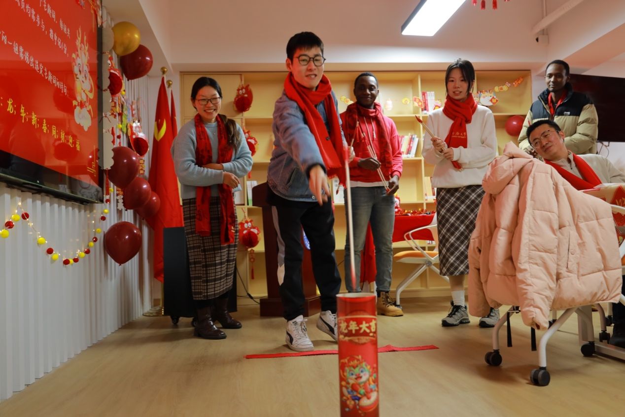 非常高兴前来参加这次新春茶话会,提前体验一波春节的喜庆,特别感谢学院老师们对我们这些留校生的关怀和慰问,也非常感谢筹办此次活动的老师与同学们,真的无比用心,令我在这寒冷的冬天感受到满满的温暖。今年应该是我在同济生活的最后一年,选择留下来过节主要还是希望为大论文再补充完善数据,为顺利毕业做最后冲刺。最后提前祝各位老师和同学们新春快乐,龙年龙马精神,科研和事业龙腾飞跃。