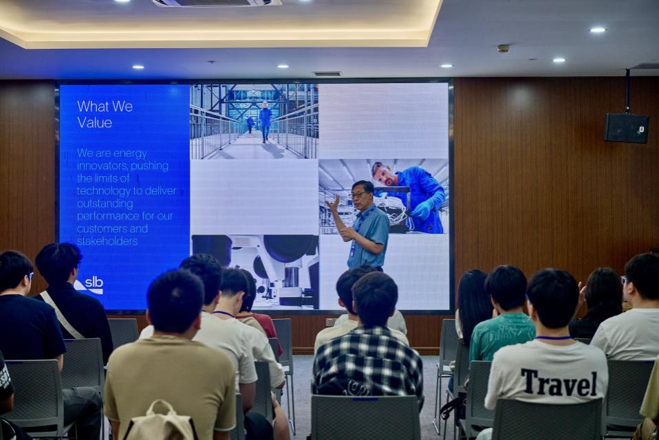 活动伊始,斯伦贝谢上海青浦技术中心总经理许志禹对学院师生的来访表示热忱的欢迎,他以风趣幽默且坦诚真挚的口吻,分享了自己从一名安全检测工程师逐步成长为技术中心掌舵人的职业历程,生动诠释了公司广阔的成长空间与多元化的发展契机。来自人力资源部门的林静娴和张铠茜为师生们深入解读了斯伦贝谢的企业文化、经营现状以及未来规划蓝图,详细剖析了校园招聘的亮点和员工成长路径,并向现场同学发出诚挚邀请,期待他们未来能够加入公司,开启职业生涯的新篇章。