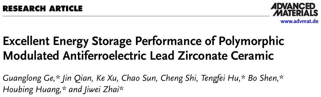 我院翟继卫教授团队关于压电和电介质储能材料的最新系列成果发表在《科学进展》、《先进材料》等材料领域权威期刊