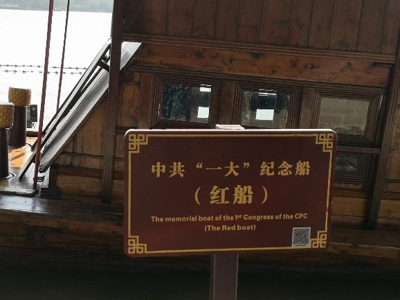 邓凌浩同学感悟道:站在南湖红船身侧,我感受到了这艘船所担负的厚重历史使命,也通过了手机视频了解到中共一大进行的艰辛与对于中国共产党的重要意义,而这红船开天辟地,敢为人先的首创精神和坚定理想,百折不挠的奋斗精神也是我们新一代青年要铭记学习的。