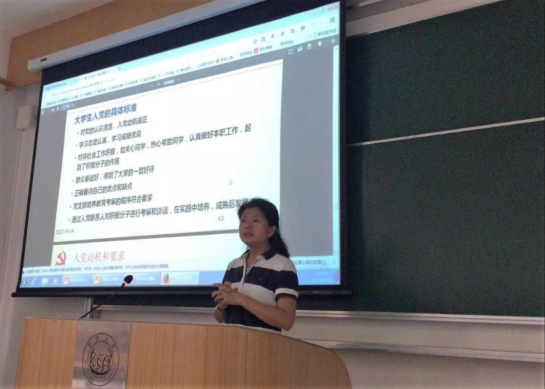 在授课第三部分的内容当中,针对同学们关于入党程序的疑问,王老师明确阐述了大学生发展党员的具体标准,详实讲解了入党程序、入党申请书的书写、思想汇报的必要性以及入党应履行的手续等,并且反复强调了树立正确入党动机的重要性。