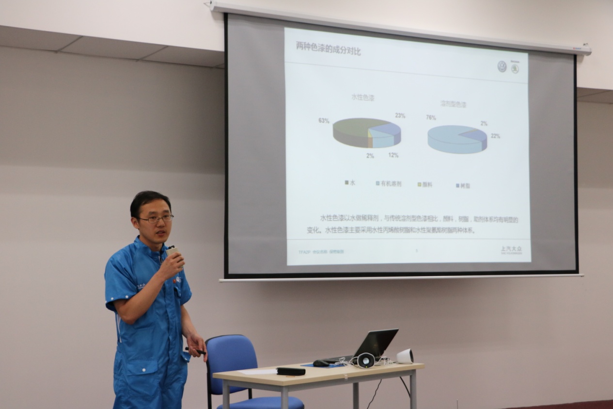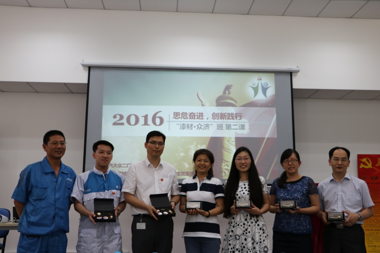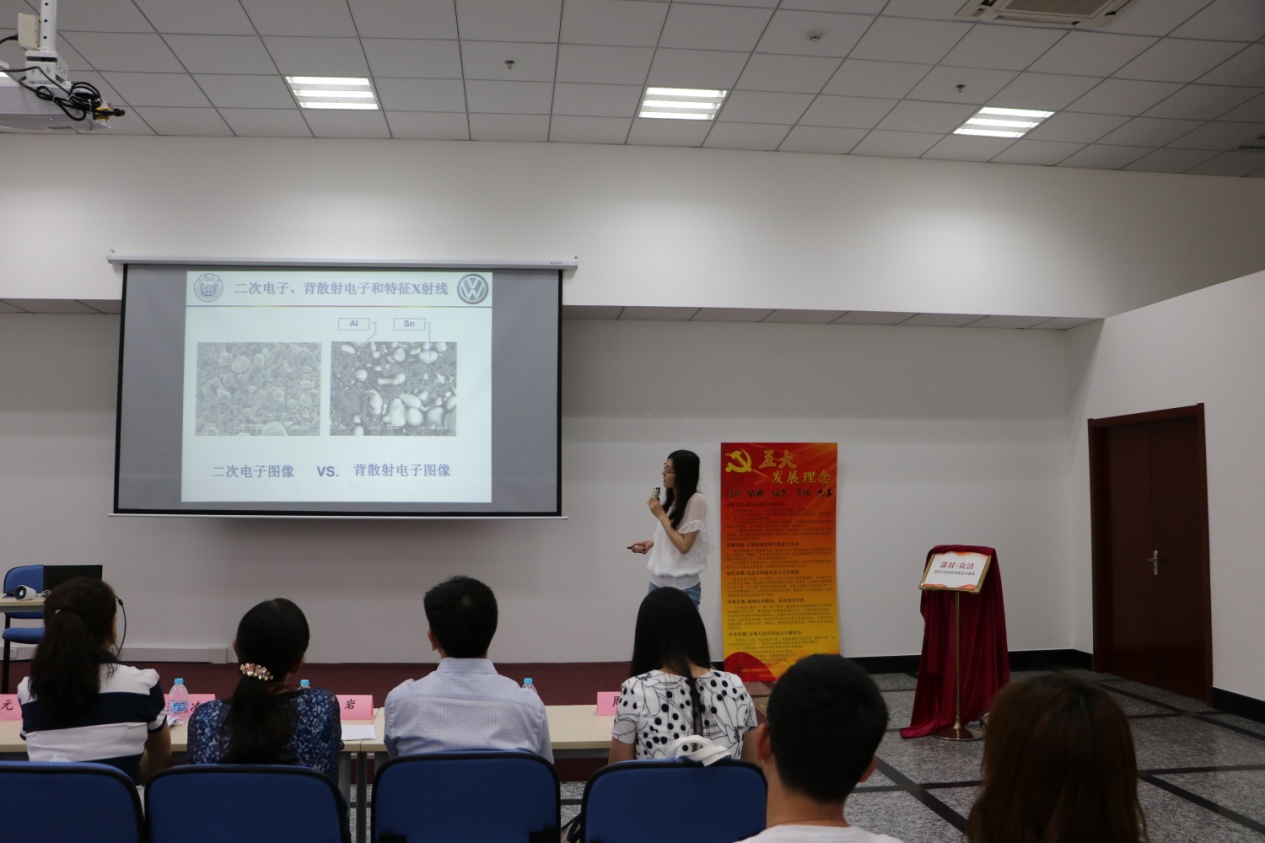揭幕仪式结束之后,《漆材·众济》讲堂第二讲——理论篇开讲。随后是来自上汽大众安亭汽车二厂一支部的宣传委员陈杰同志带领党员们学习了“五大发展理念引领中国未来”的报告,使全体党员领会到“五大发展理念”中发展的动力、平衡、载体、空间与成果是一个有机整体,大家对“五大发展理念”形成全面的领会,党员同志在学习之后积极发言交流学习感受,针对学生党员而言,需要积极参与创新项目,成为综合型、全方位的高素质人才,拥有开放包容的性格与公平的心态。对于企业,需要创新的科学技术、协调企业结构与产品形式、提高持续发展的能力、坚持“走出去”的理念、构建和谐的发展体系,促进企业综合竞争力的提升。随后来自上汽大众安亭汽车二厂一支部的王宗明同志为学生党员介绍了“2010v涂装工艺”,对水性漆、溶剂性漆的应用、优缺点及区别做了详细介绍,使学生党员对于涂装工艺形成初步认识。接着,bv1946伟德国际始于英国高分子系研究生党支部党员黄秋桐同志,为全体党员讲解了“扫描电子显微镜及能谱分析仪”,使企业党员对于材料表征技术具有更为直观的了解,为后期双方在专业方面的合作奠定基础。