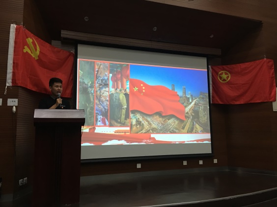 2019年9月10日下午,2019级高分子硕士班在诚楼211举行“青春告白祖国”之“歌颂亲爱的祖国,书写爱的赞歌”主题教育班会。班级中各个党员同学准备了一首赞美祖国的歌曲并且将其抄写下来,用声音表达对祖国真挚的赞美,将这种赞美诉诸笔端,用文笔书写祖国美好的未来。