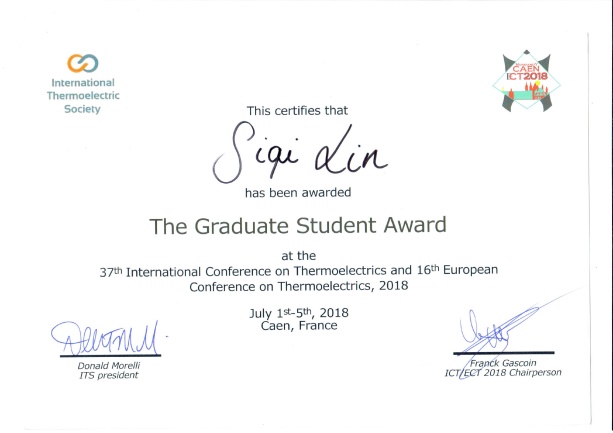 2019届直博研究生林思琪也将自己青春献给了科研,做人之不愿做,行人之不敢行,立足基础,终于厚积薄发。林思琪在实验室从小事做起,也坚信所有科学问题都源于最简的开始。她搜集了现有报道的所有热电材料的热导率及声子结构的信息,并发现低声速、低声学截止频率等有效实现低晶格热导率的指导思路,以此开发了晶格热导率低如木头的硫银锗矿材料。五年的博士生涯,她发表SCI论文31篇热电论文,第一/通讯作者论文7篇,其中包括Cell姊妹刊和Nature子刊2篇。鉴于在热电研究的成果和贡献,被国际热电学会授予2018 ITS Graduate Student(每年遴选2名博士生)和ICT Best Poster等国际荣誉奖项。而今,博士毕业的她选择了在伟德国际继续自己的科研生涯。